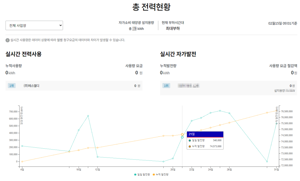 알위백(RWE100)을 통해 각각 사업장별로 한 곳에서 사용전력을 확인할 수 있으니